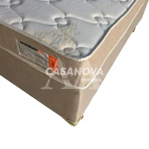 Molejo estrutural com mola tipo ensacada 179 molas p/m2, suporte médio do molejo 245 Kg/m2 e bitola do arame de 2,0mm. 1 lâmina de poliéster expandido (EPS) com espessura de 8 cm