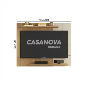 Acabamento lateral: sim Estrutura em MDP 25mm e 15mm: sim Kit fita de led (opcional) : sim – vendido separadamente Suporta TV de até 60″” Dimensões: Altura: 138 cm Largura: 218 cm Profundidade: 6 cm Garantia: 03 meses