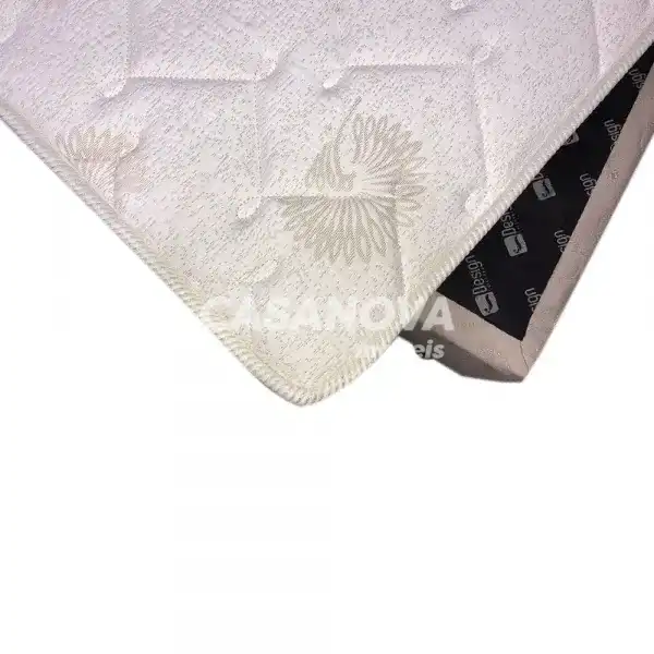 Revestimento Colchao: Tecido plano em malha, bordado com espuma convencional flexível de poliuretano, 1 lamina de polister expadido EPS com espessura de 8 cm.