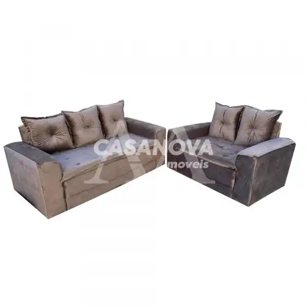 CJ ESTOFADO BOMFLEX 2/3 LUGARES HAITI CHOCOLATE VELUDO INCA 17