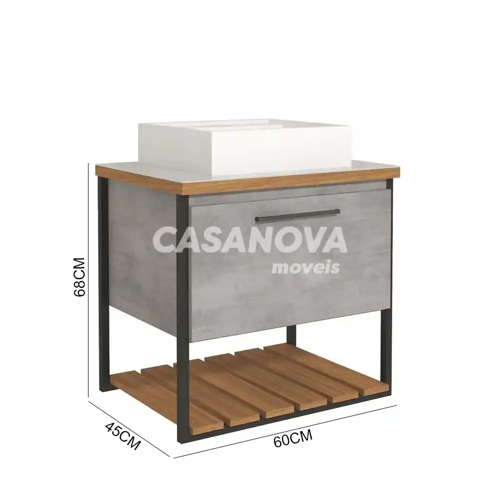 GABINETE P/ BANHEIRO MGM CARIBE 60CM C/ CUBA SOBREPOR CIMENTO