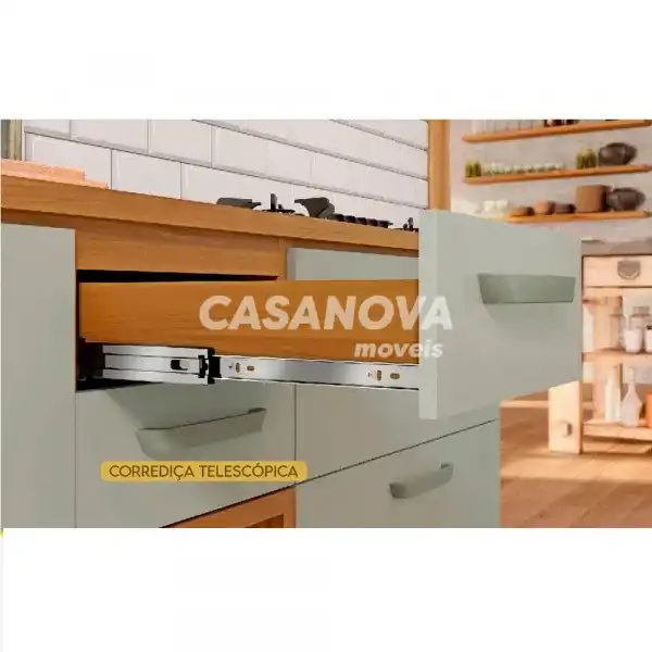 Gaveta com corrediças telescópicas três estágios e abertura total do bojo: 02