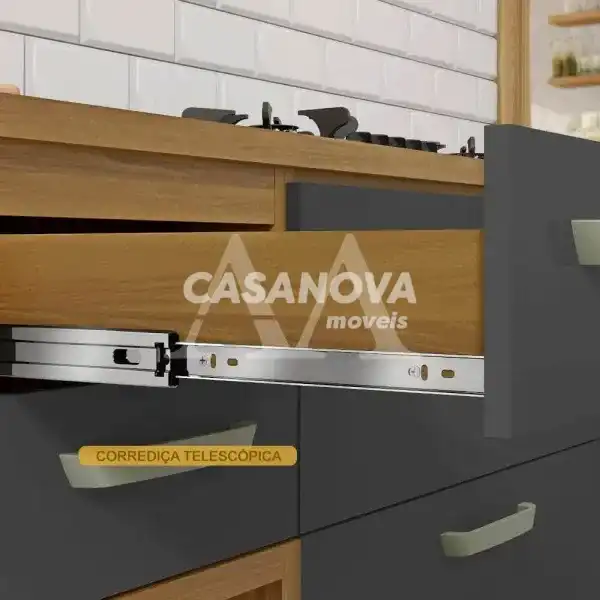 Gaveta com corrediças telescópicas três estágios e abertura total do bojo: 02