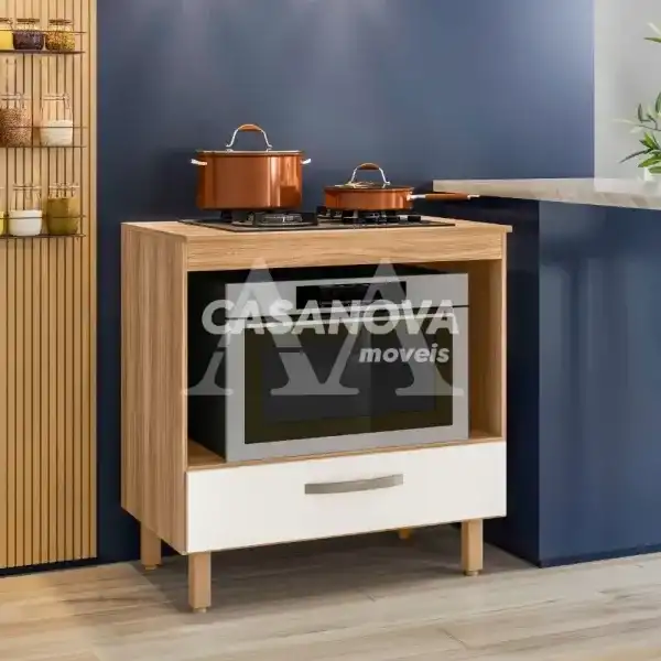 BALCAO NICIOLI 1G P/ COOKTOP 80 FREIJO/OFF WHITE CRISTAL