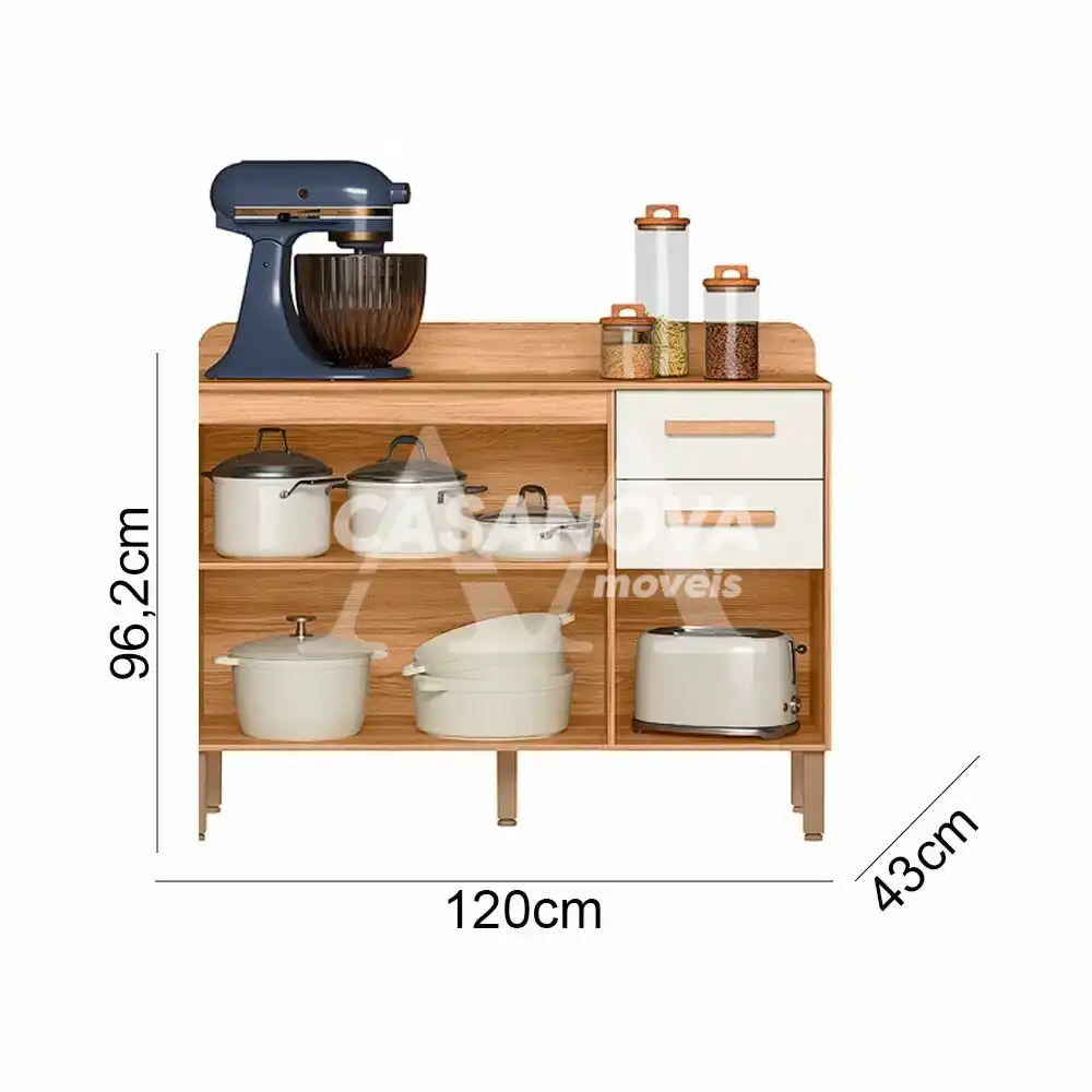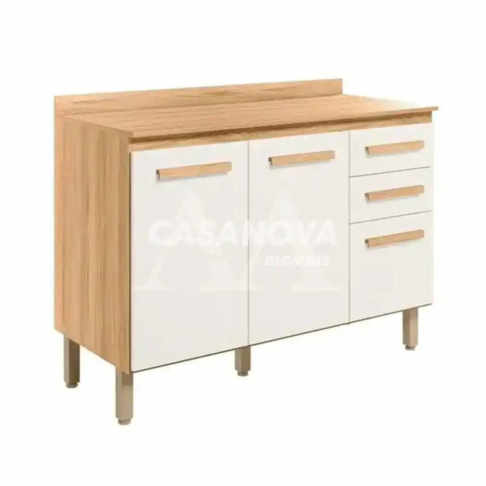 BALCAO NICIOLI 2P 3G MARIA FLOR 120 FREIJO / OFF WHITE CRISTAL