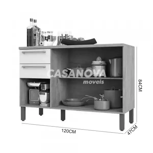 BALCAO RONIPA 3P 2G NAPOLI PRIME 120CM AMENDOA/CHUMBO