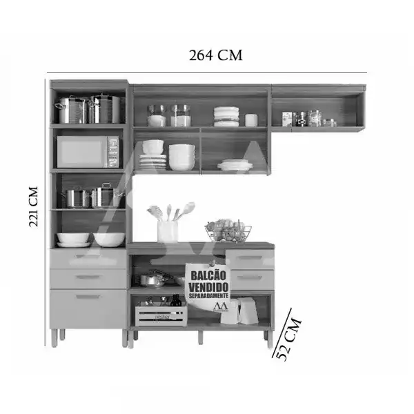COZINHA NESHER PRINCESA FREIJO / GRAFITE