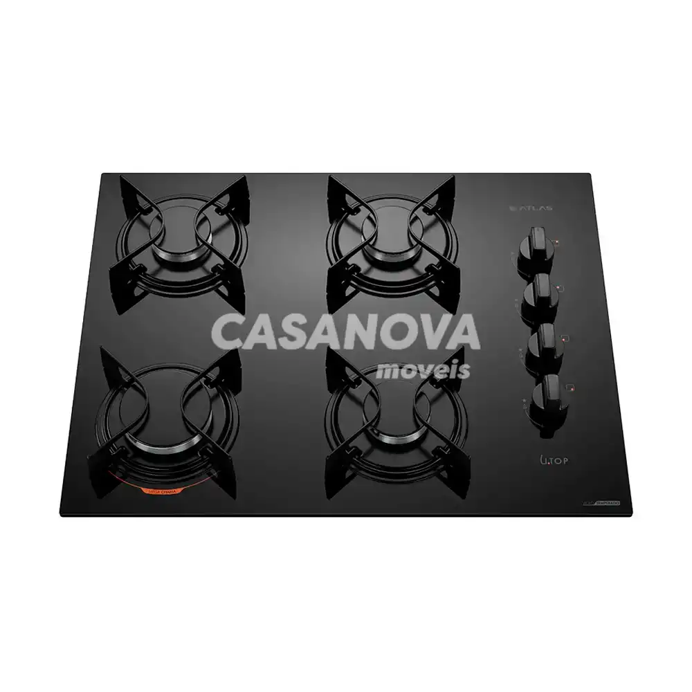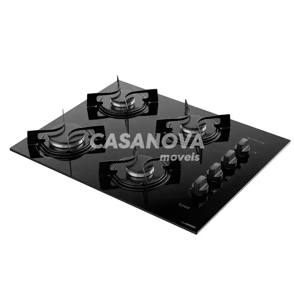 FOGAO 4B ATLAS COOKTOP UTOP MESA VIDRO ESMALTADO VP GAS PRETO