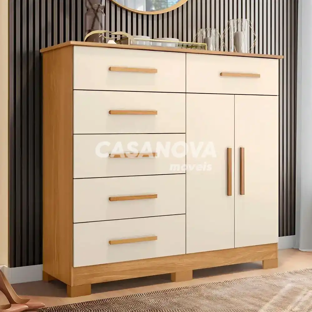 A Cômoda Xangai da Albatroz é uma excelente opção para seu quarto porque permitirá que você organize uma grande quantidade de roupas.