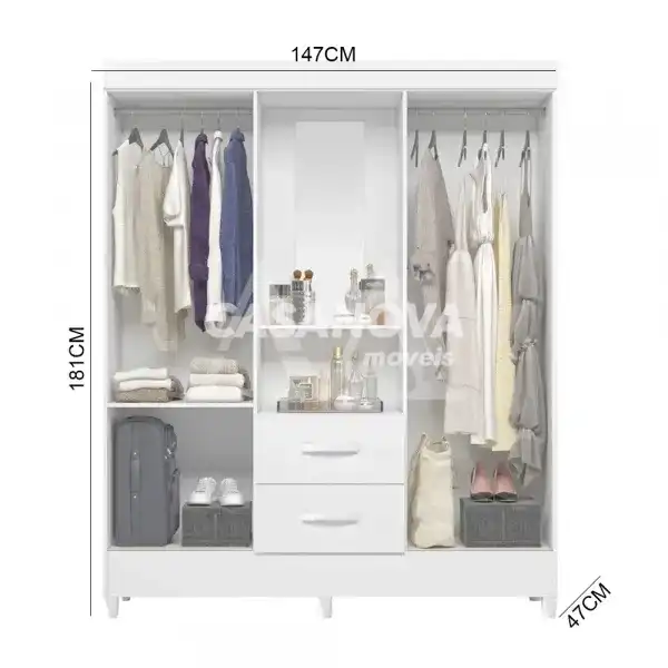 ROUPEIRO 2G 4P. ABRIR C/ ESPELHO ALBATROZ MOBI CAPELINHA BRANCO FOSCO