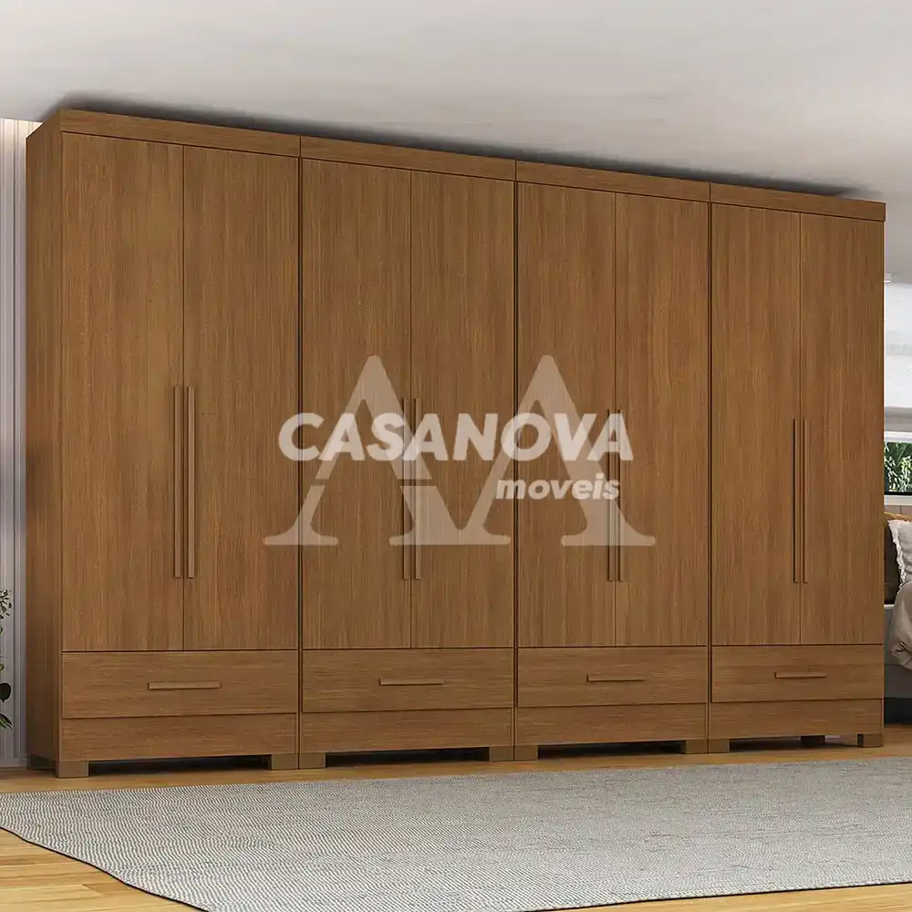 ATENÇÃO: ESTE ROUPEIRO APRESENTA 4 POSSIBILIDADES DE MONTAGEM INTERNA. ALÉM DISSO, SE VOCÊ ADQUIRIR DOIS, TRÊS OU QUATRO DESTES, SE ALINHADOS LATERALMENTE, VOCÊ TERÁ RESPECTIVAMENTE UM ROUPEIRO DE QUATRO, SEIS OU OITO PORTAS.