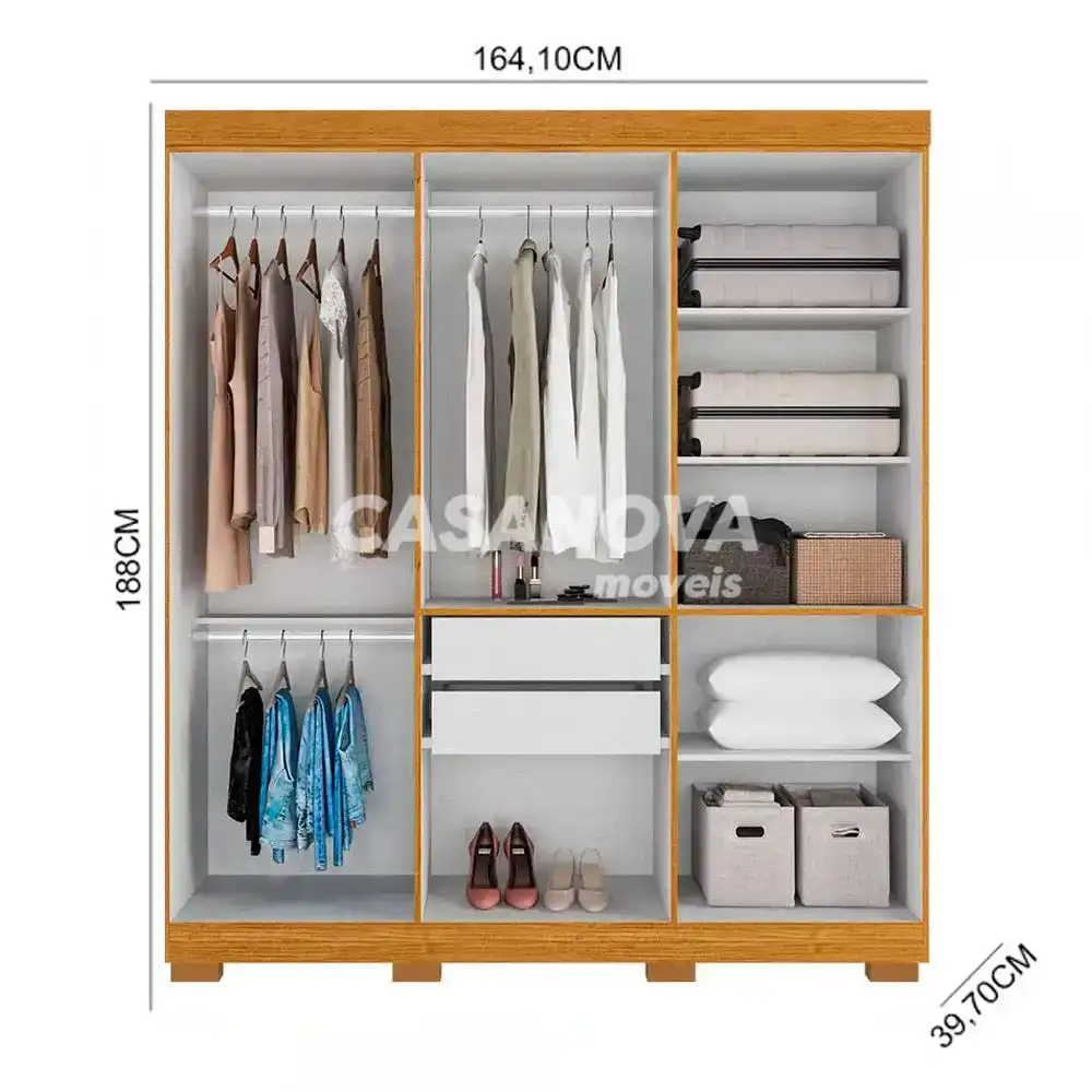 O roupeiro Lana da ACP possui ótima divisão interna, um visual bonito e design moderno vai deixar seu quarto mais charmoso e elegante.