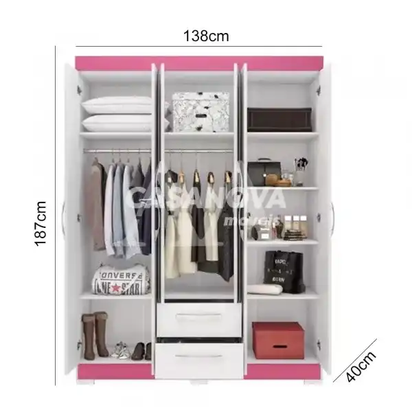 ROUPEIRO 6P. ABRIR 2G NOTAVEL NT 6015 BRANCO NEW/ROSA FLEX