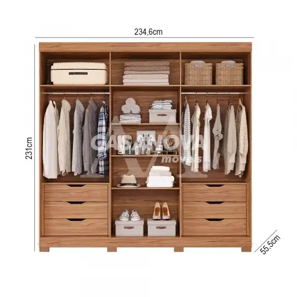 Adicione charme no seu quarto com o roupeiro de seis portas da Cecilia.