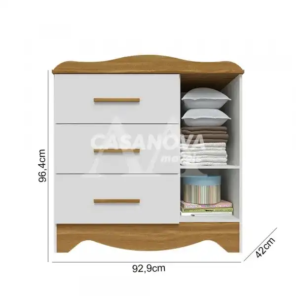 A Cômoda Lisi da Peroba é uma excelente opção para seu quarto porque permitirá que você organize uma grande quantidade de roupas.