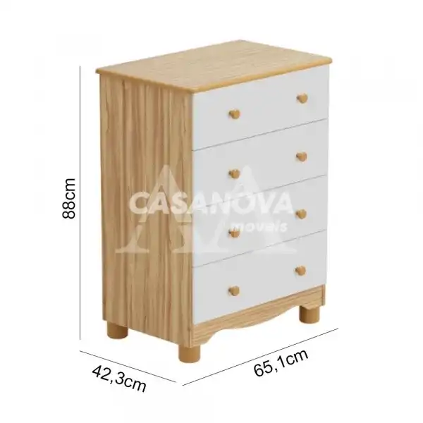COMODA 4G PEROBA JUNIOR SIMPLES BRANCO BRILHO/AMENDOA