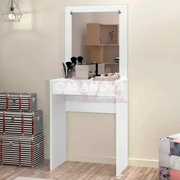 A penteadeira Sofia é ideal para você que quer organizar da melhor maneira todos os seus itens de maquiagem etc, sem ocupar muito espaço, de forma prática e eficiente.