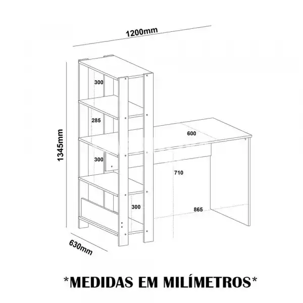 Largura (prateleira + tampo): 120 cm