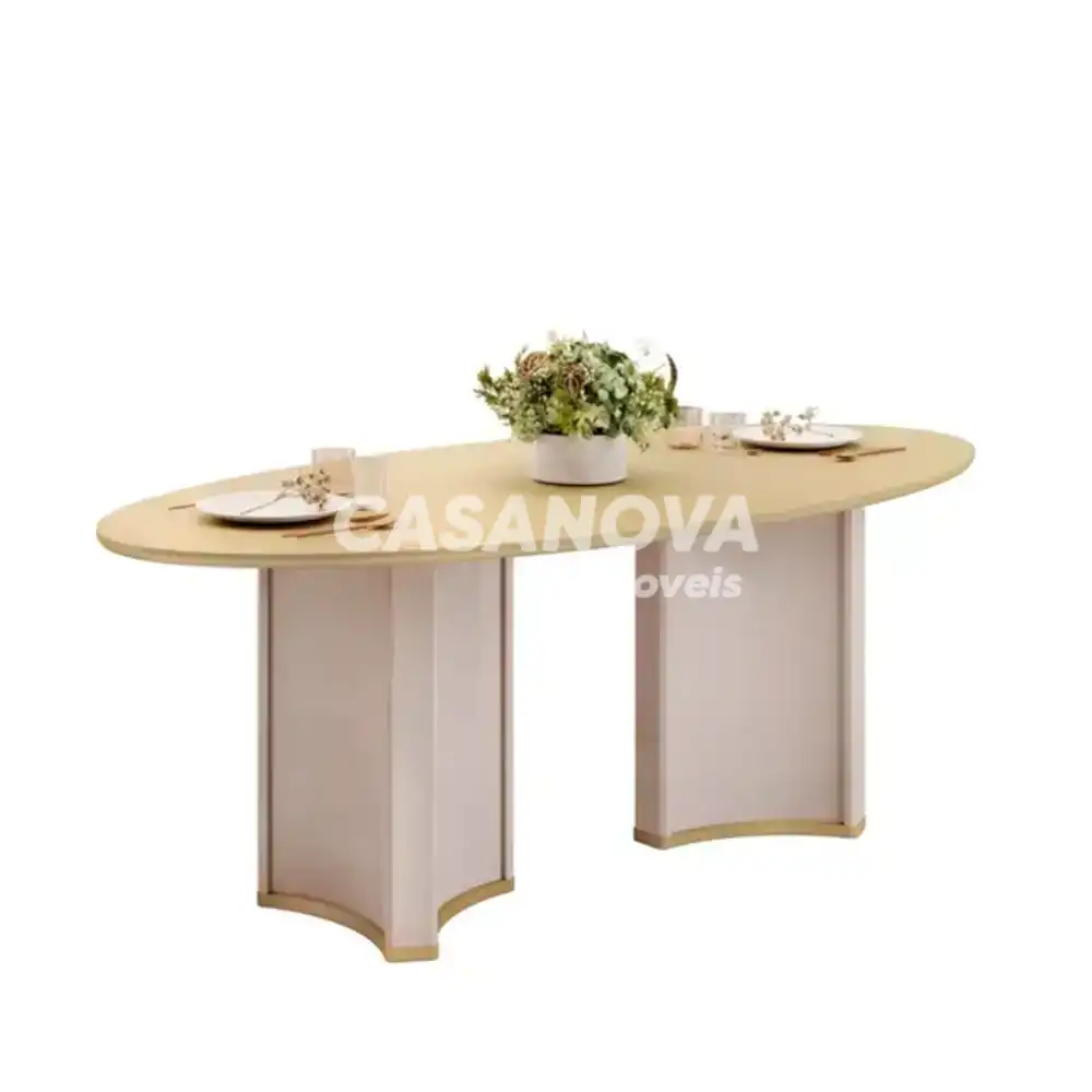 MESA DJ LIZ 218X108 TAMPO ORGANICO C/VIDRO OFF WHITE/DOURADO
