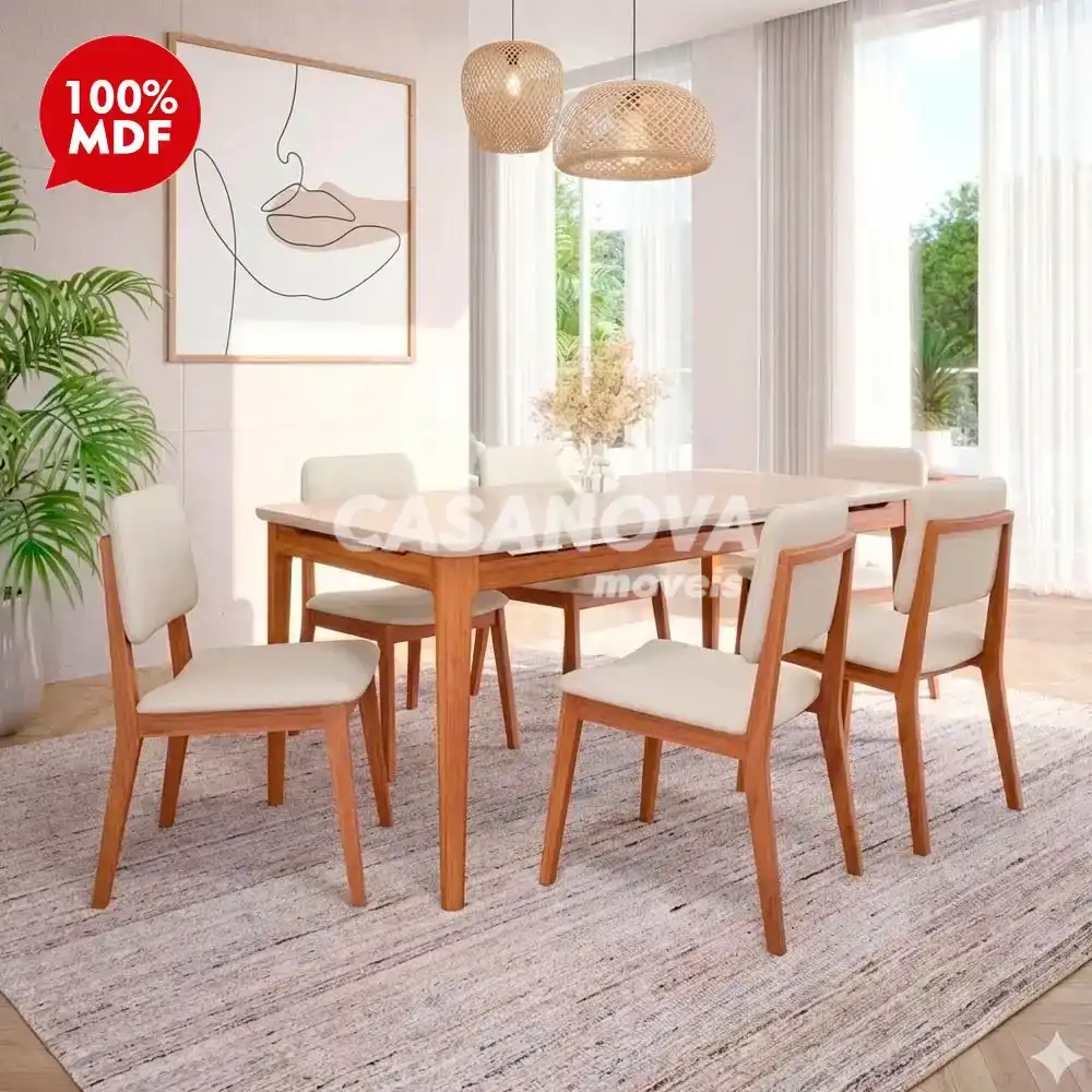 O Conjunto de Mesa Baboa com 6 Cadeiras Amarilis da Cimol dará muito charme e elegância para a sua sala. Esse produto não possui vidro.
